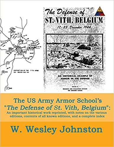 The US Army Armored School's The Defense of St. Vith, Belgium 17-23 December 1944: An historical example of armor in the defense is an important work on the Battle of the Bulge (the Ardennes Offensive) that has been difficult to find, since it has never been widely available. It is a well-researched history of the battle at St. Vith as a study of armor in the defense (although it is inadequate as a general history, since it intentionally limits its scope as its subtitle states).